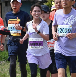 ゲストランナーに ももクロ高城れにさんも走っていて、5km地点で彼女を抜かすも、